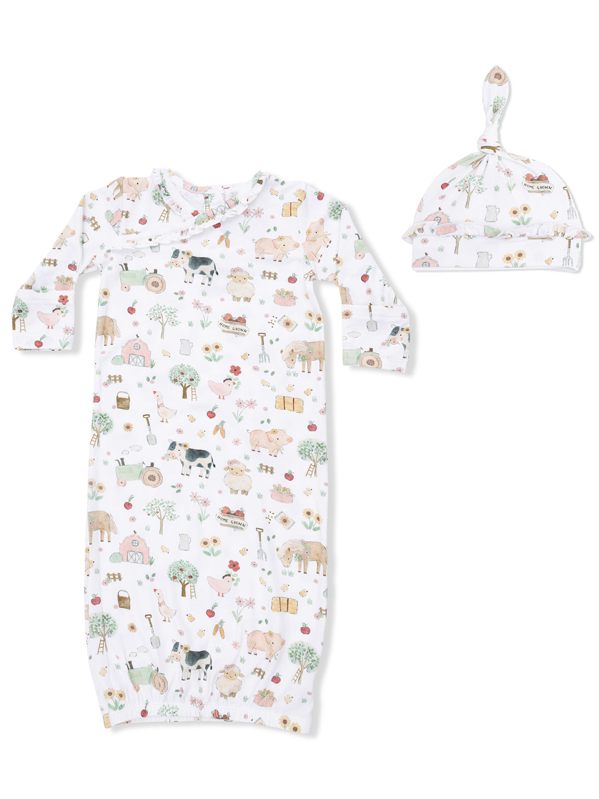 Kimono Gown & Ruffle Knotted Hat, Cute Farm Animals Pink