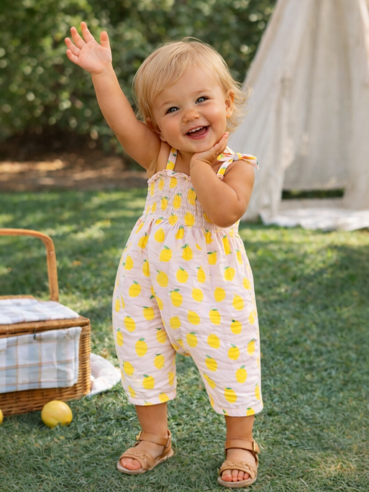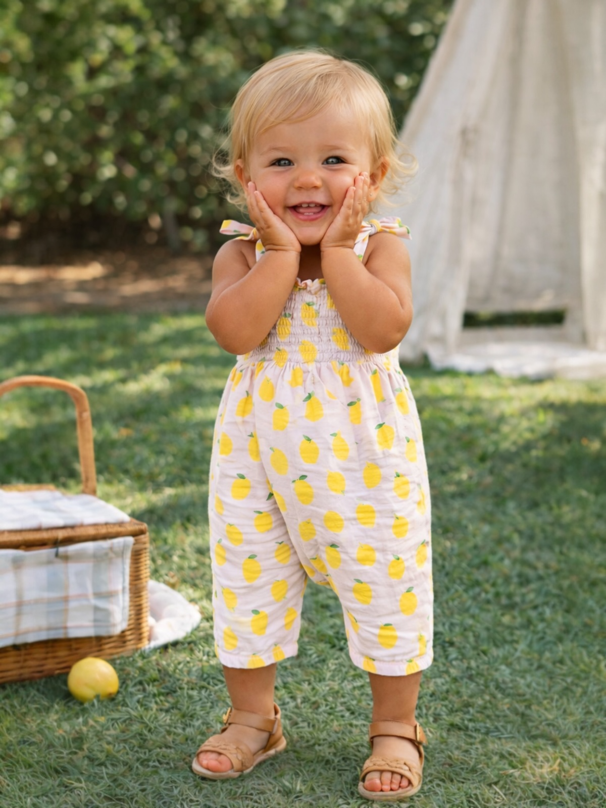 Lemon Sorbet / Muslin Smocked Jumpsuit