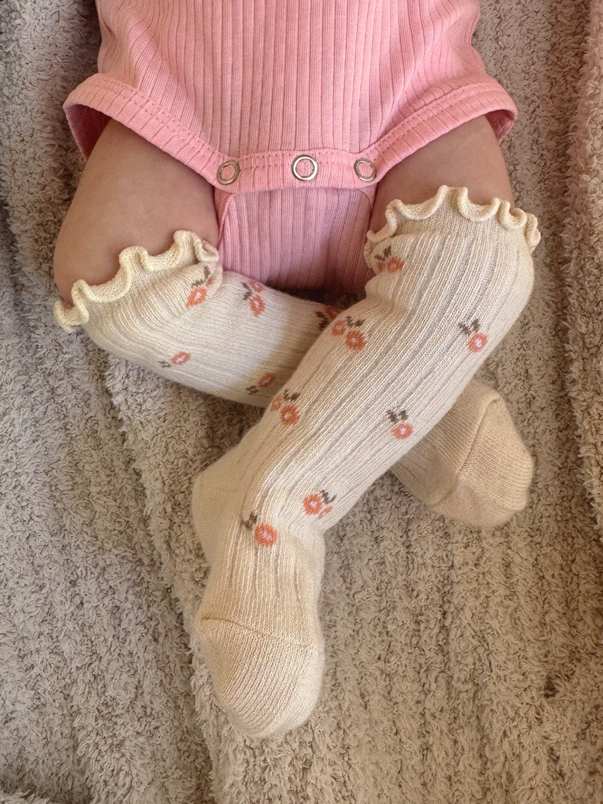 Add a little ruffle to her wardrobe! Soft & stretchy ribbed socks with lettuce edge detailing.