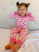 Snuggly, stretchy, and full of festive fun - our Pumpkin Checkerboard Pink Collection is the sweetest spin on Fall/Halloween style. Featuring a playful pink checkerboard backdrop with pumpkins in shades of pink and orange, this collection bring a cheerful fall vibe that’s both cozy and cute. Made from 95% viscose from bamboo with just the right amount of stretch, they’re lightweight, breathable, and buttery soft for all-day twirling, crawling, and snuggling. The perfect mix of comfort and charm for your little one’s Halloween and fall lineup.