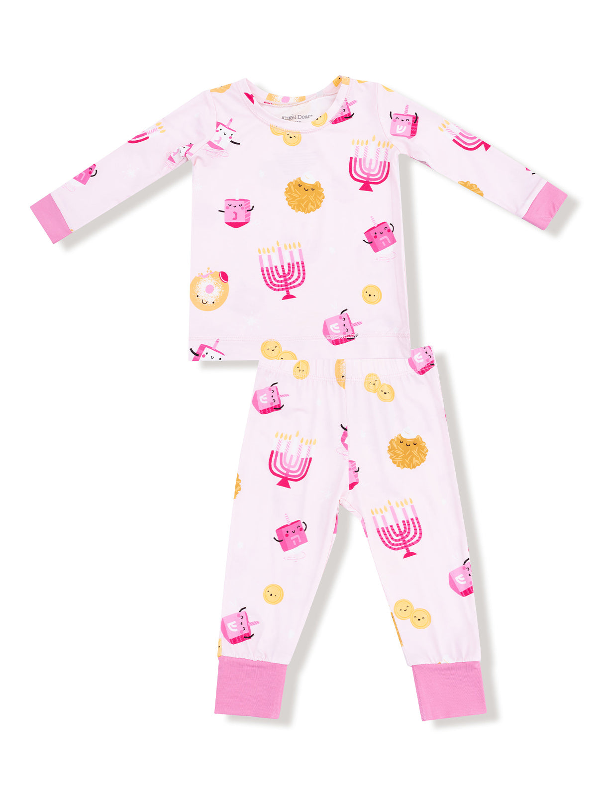 Long Sleeve Loungewear Set, Hanukkah Pink
