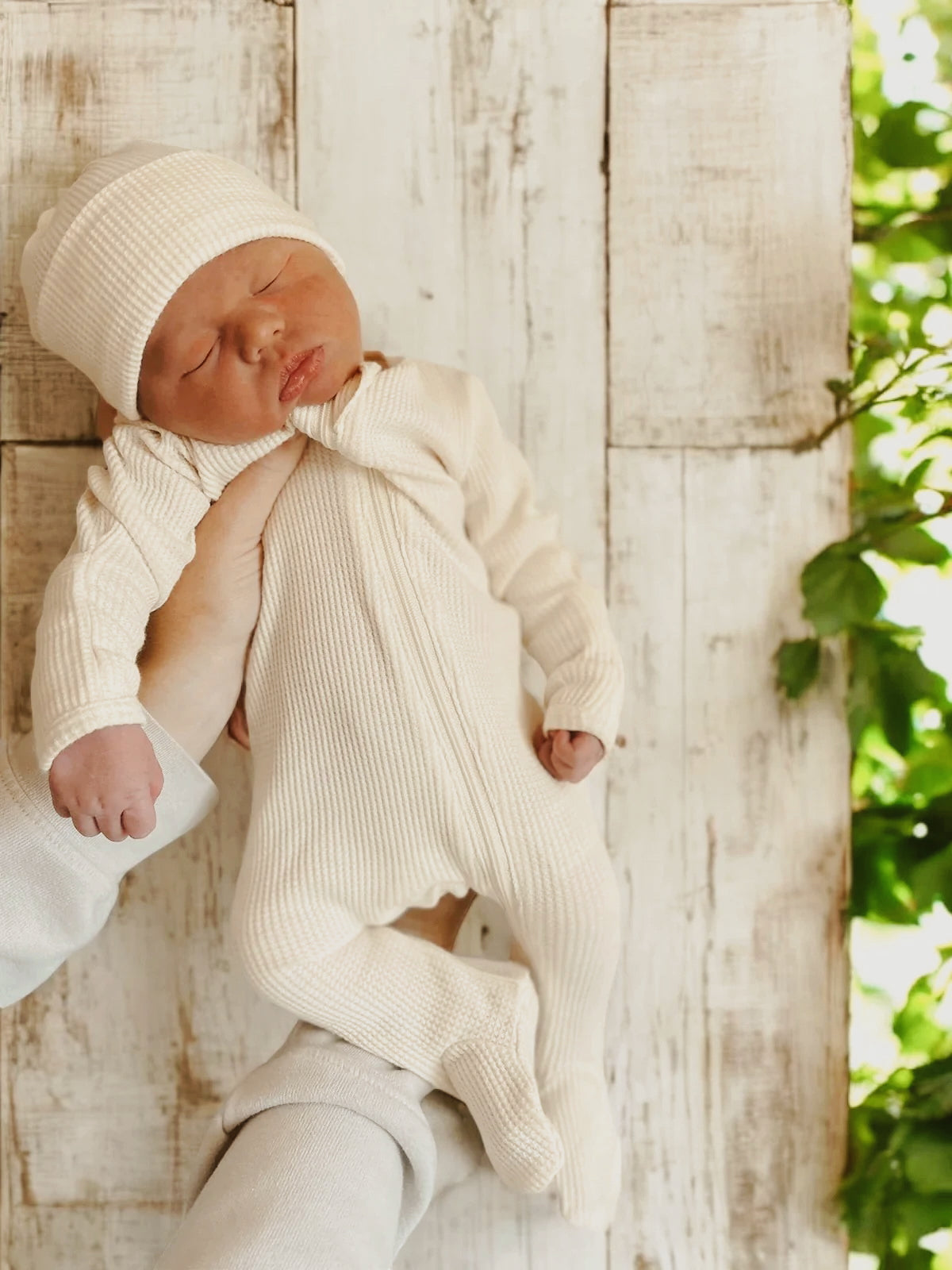 Whether you're preparing for your baby's first photo shoot or adding a cozy staple to their wardrobe, this Organic Waffle Zip Footie is the perfect mix of practicality and cuteness.