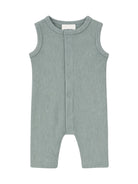 This sleeveless one-piece with a drop crotch for babies, toddlers, and young children offers a cute spring or summer outfit. The mountain green color combined with the organic waffle fabric elevates the easy romper for a luxe yet casual look. The functional snaps down the front make dressing your little one even easier. Wear alone during those sunny summer days or pair with a cardigan for cool spring days/summer nights.