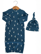 Organic Waffle Gown & Hat Set, Midnight Moon