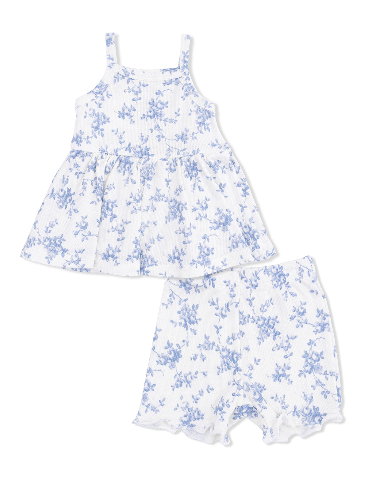 Peplum Tank & Bike Short, Baby Blue Vines Floral