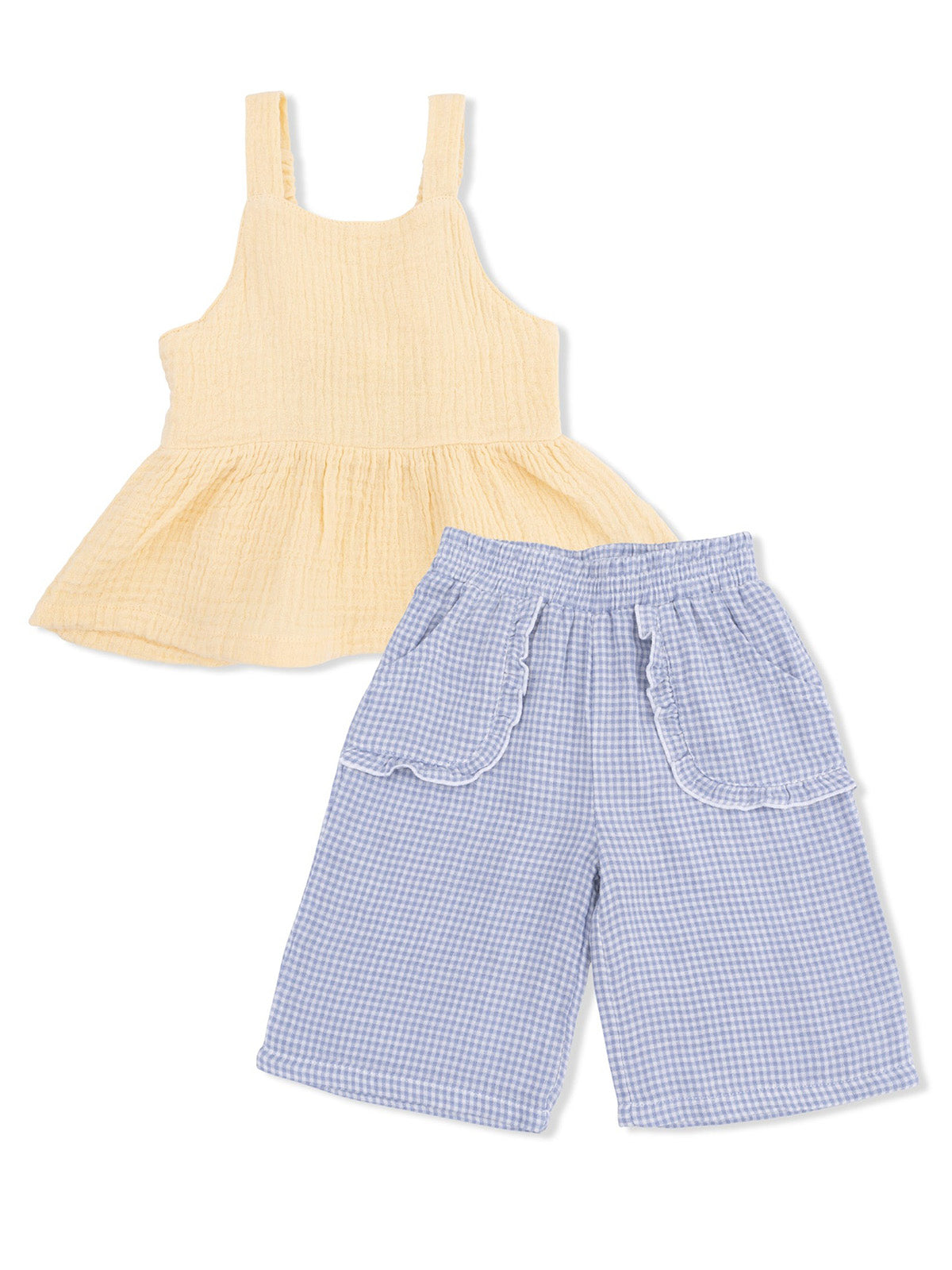 Peplum Tank & Wide Leg Pant, Micro Blue Gingham