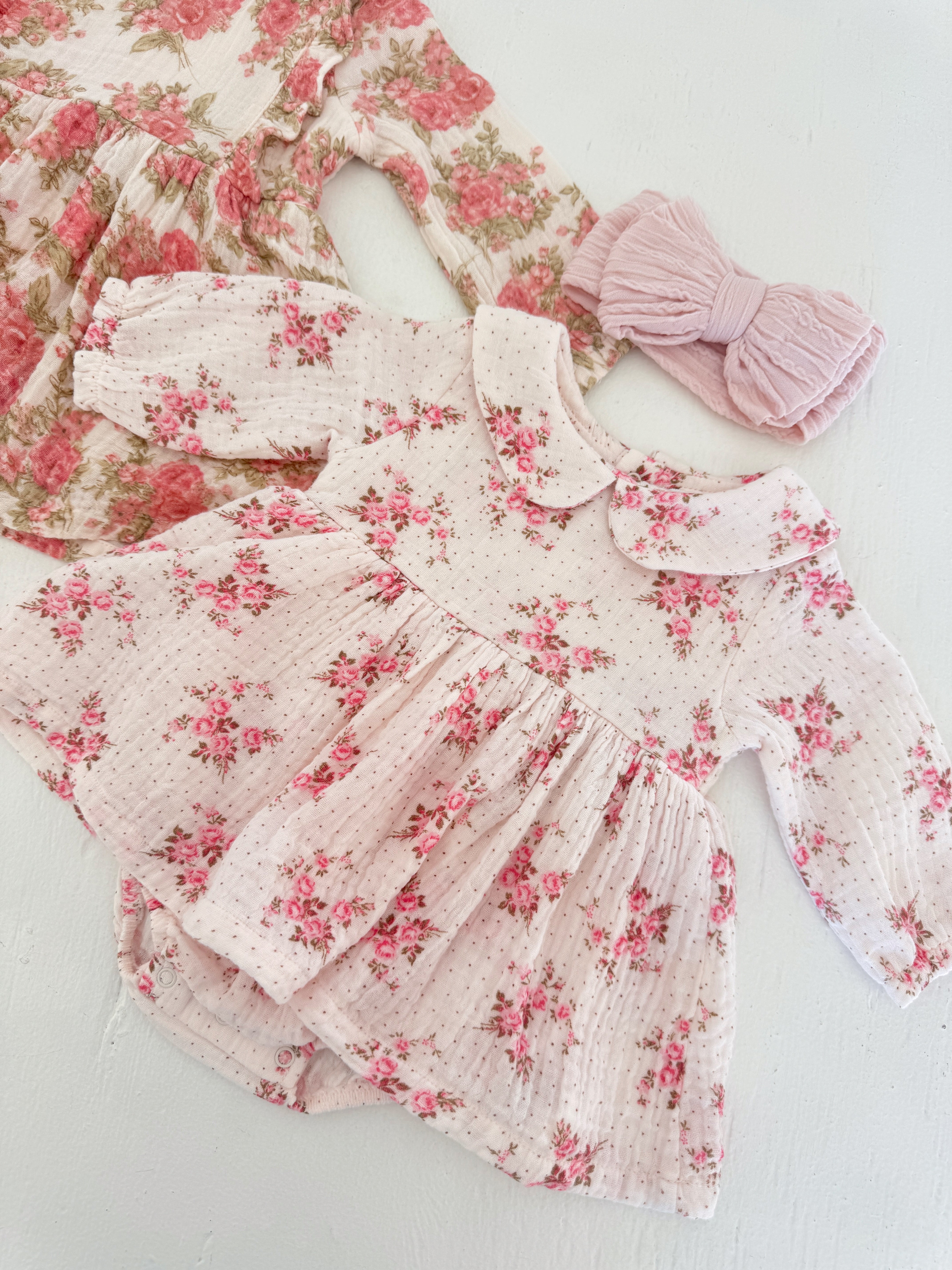 A timeless favorite with a modern twist! Our Long Sleeve Peter Pan Collar Bubble with Skirt is made from soft, breathable organic cotton muslin and features a sweet Peter Pan collar for a touch of vintage charm. Paired with a gathered skirt for extra style and movement, this darling duo is perfect for special outings or everyday cuddles.