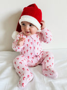 Pink Candy Cane / Organic Pointelle 2-Way Zip Footie