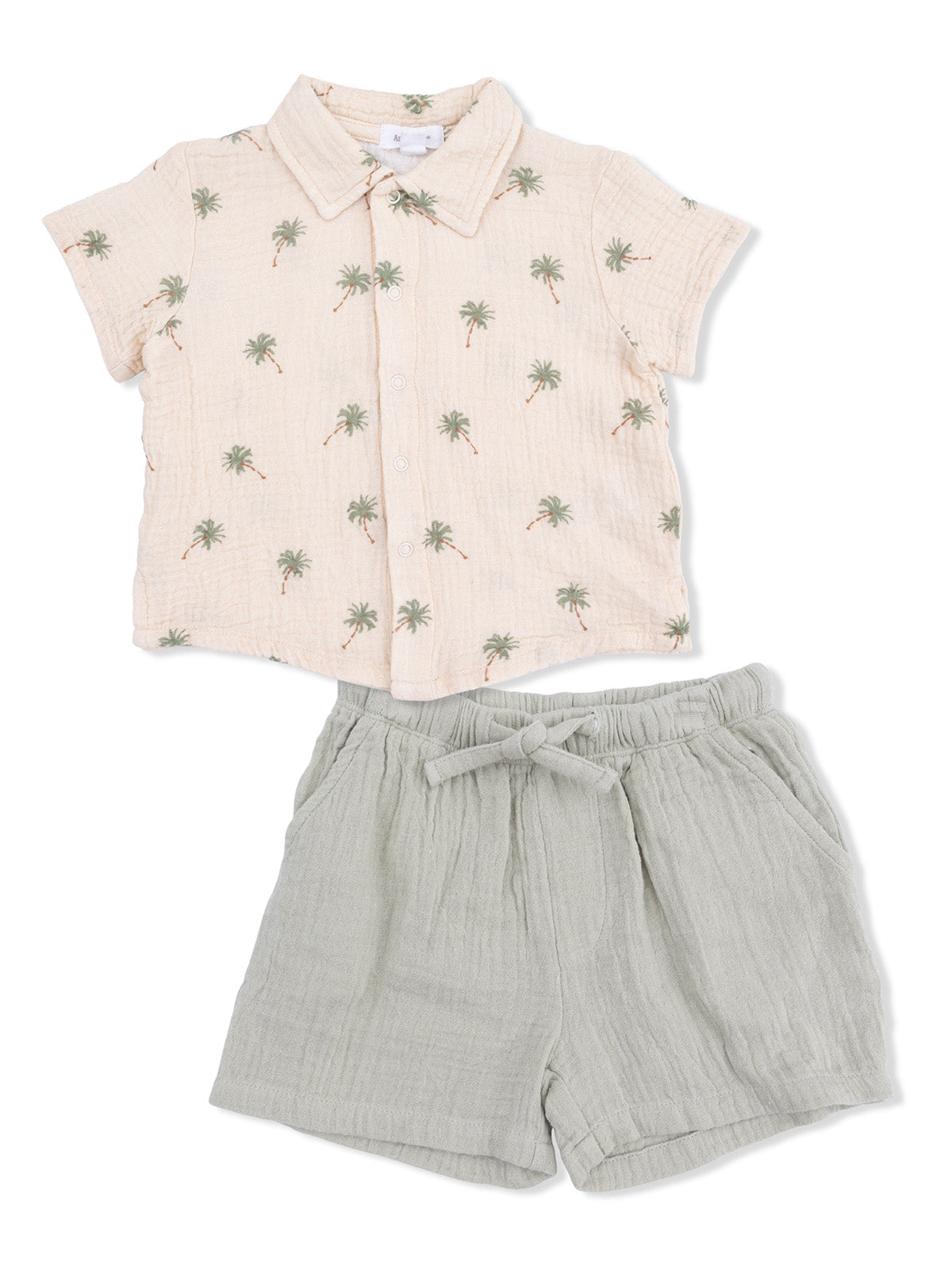 Polo Shirt & Casual Short Set, Palm Trees
