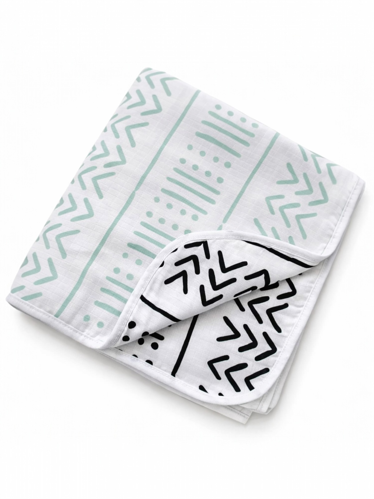 Reversible Muslin Quilt, Seafoam/White Mudcloth