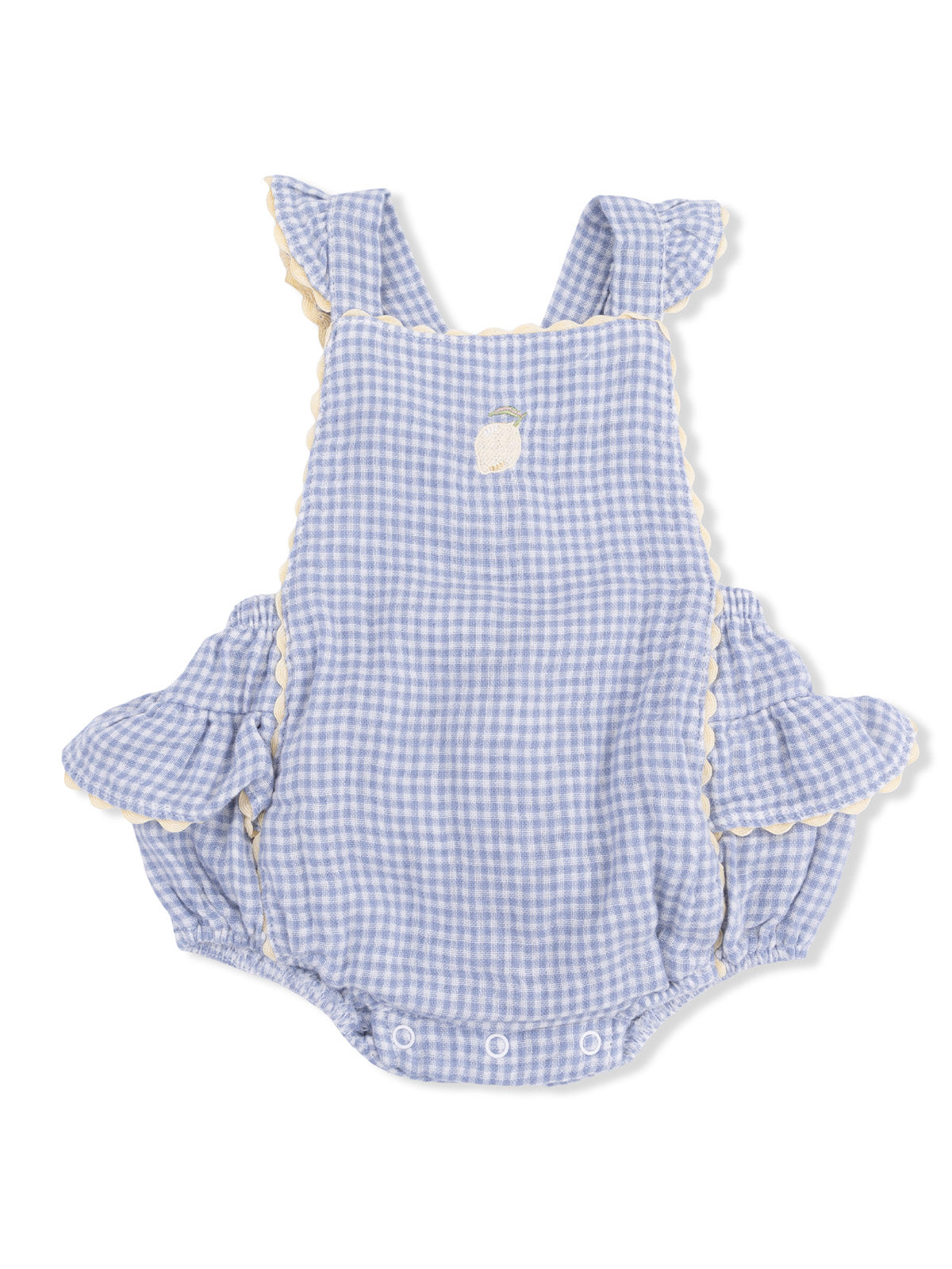 Ric Rac Ruffle Sunsuit, Micro Blue Gingham Lemon