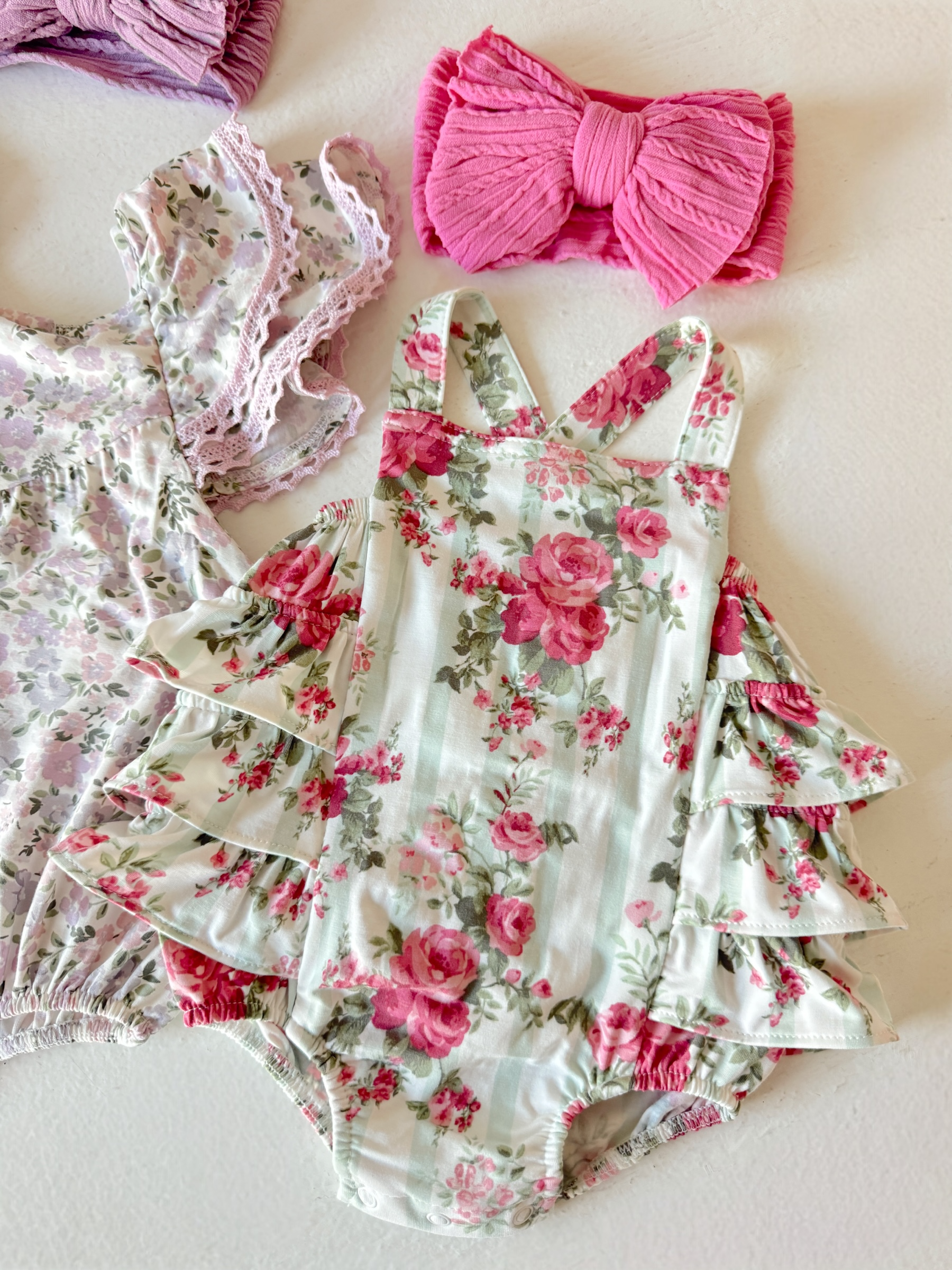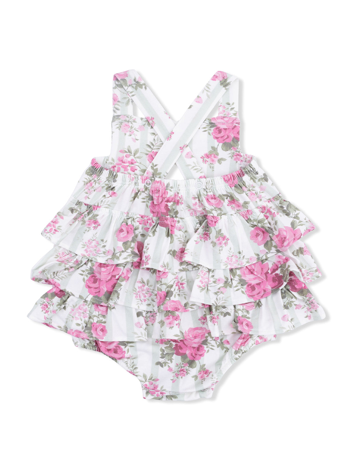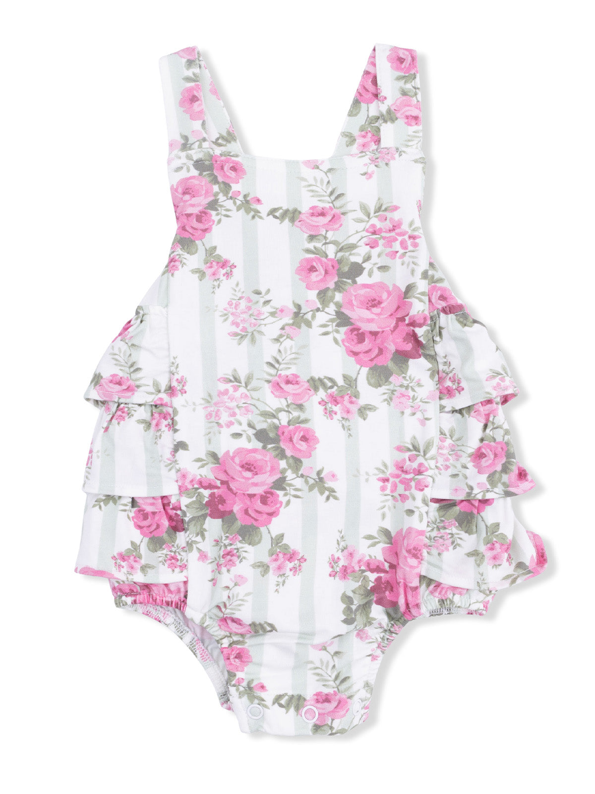 Ruffle Sunsuit, Cabbage Rose Stripe