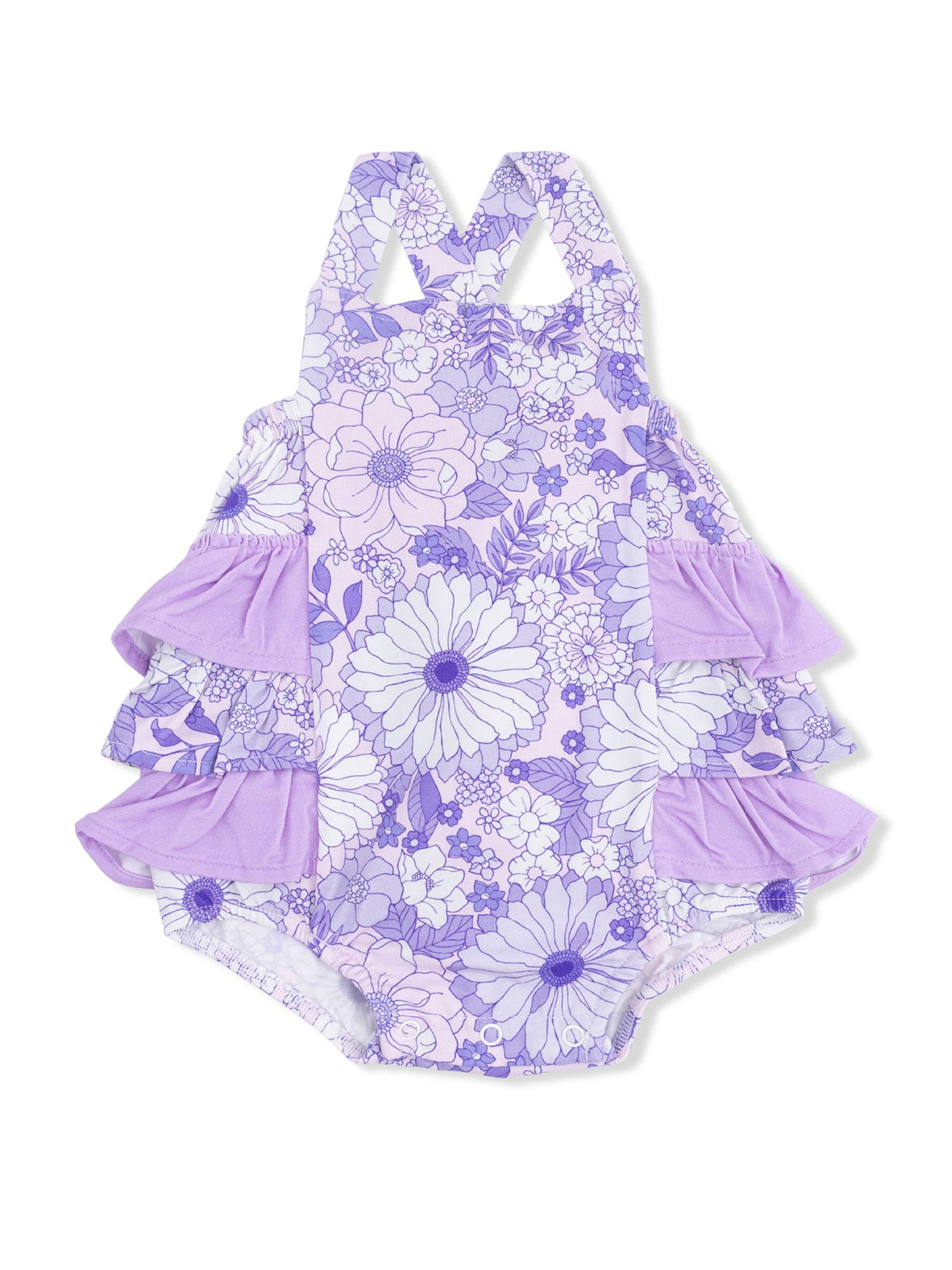 Ruffle Sunsuit, Lacy Lavender Floral