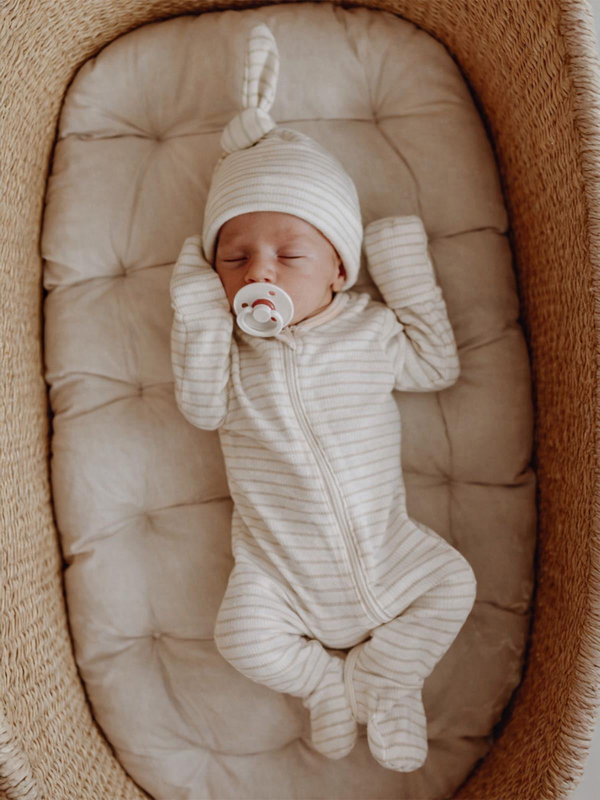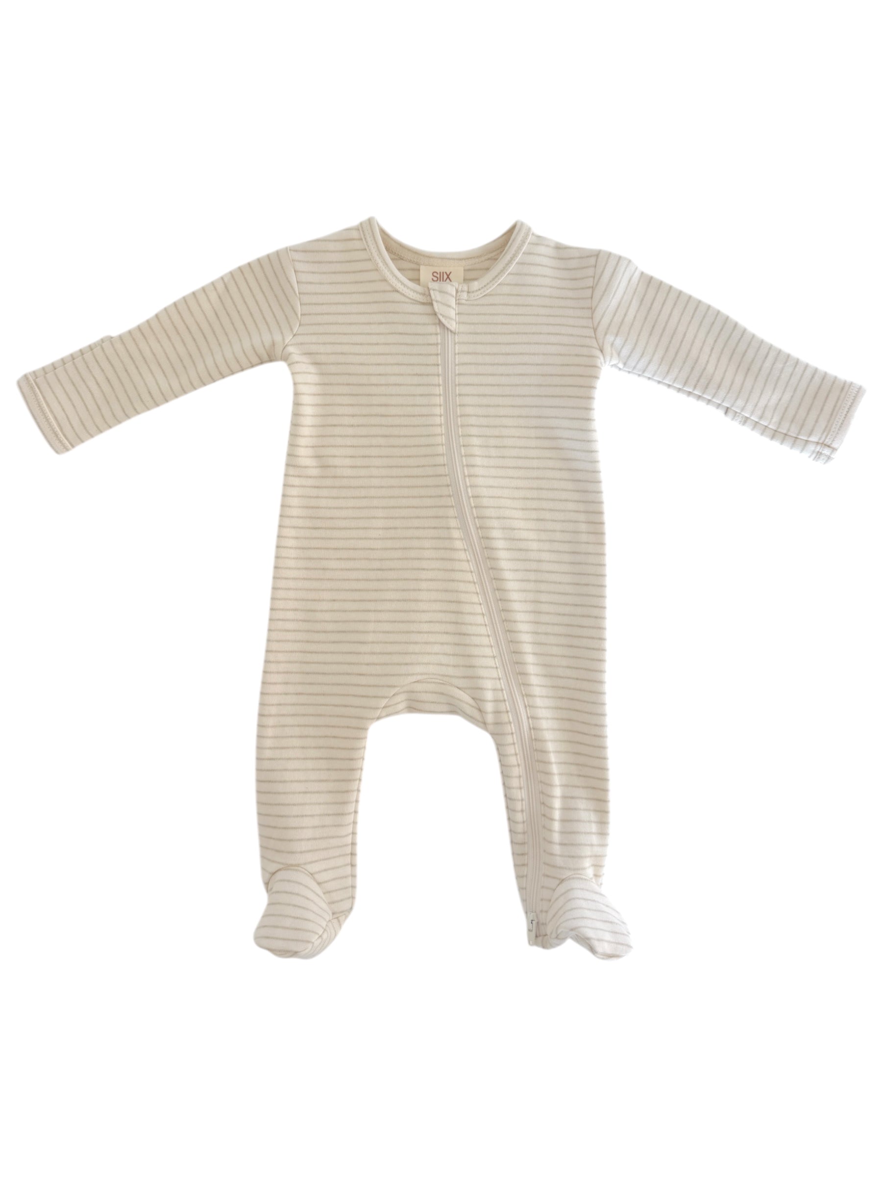 Sage Pencil Stripe / Organic 2-Way Zip Footie