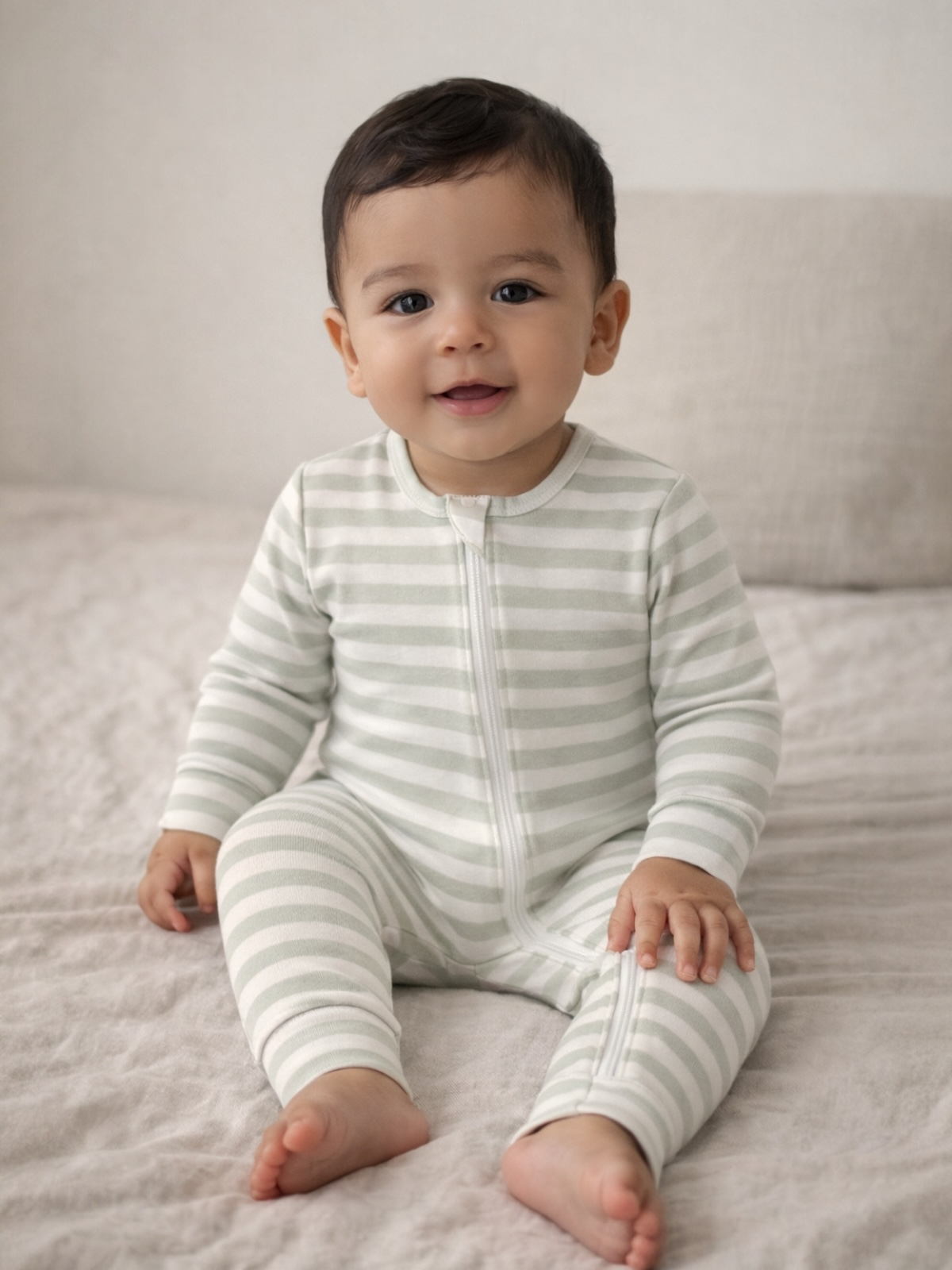 Sage Stripe / Organic 2-Way Zip Romper