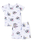 Short Loungewear Set, Soccer Balls Playing Soccer Pink