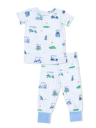 Short Sleeve Loungewear Set, Vintage Golf Carts Blue