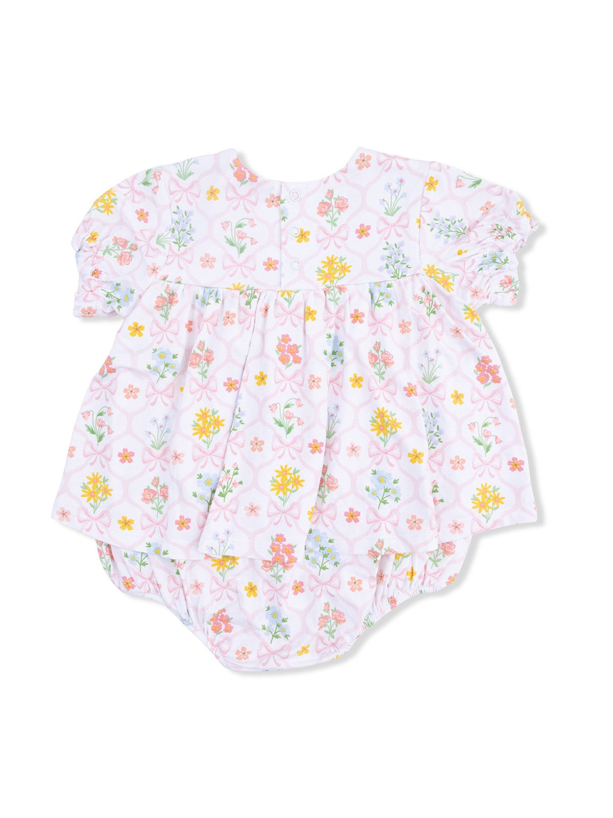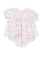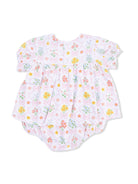 Smocked Ruffle Bubble with Skirt, Spring Blooms Bow Trellis