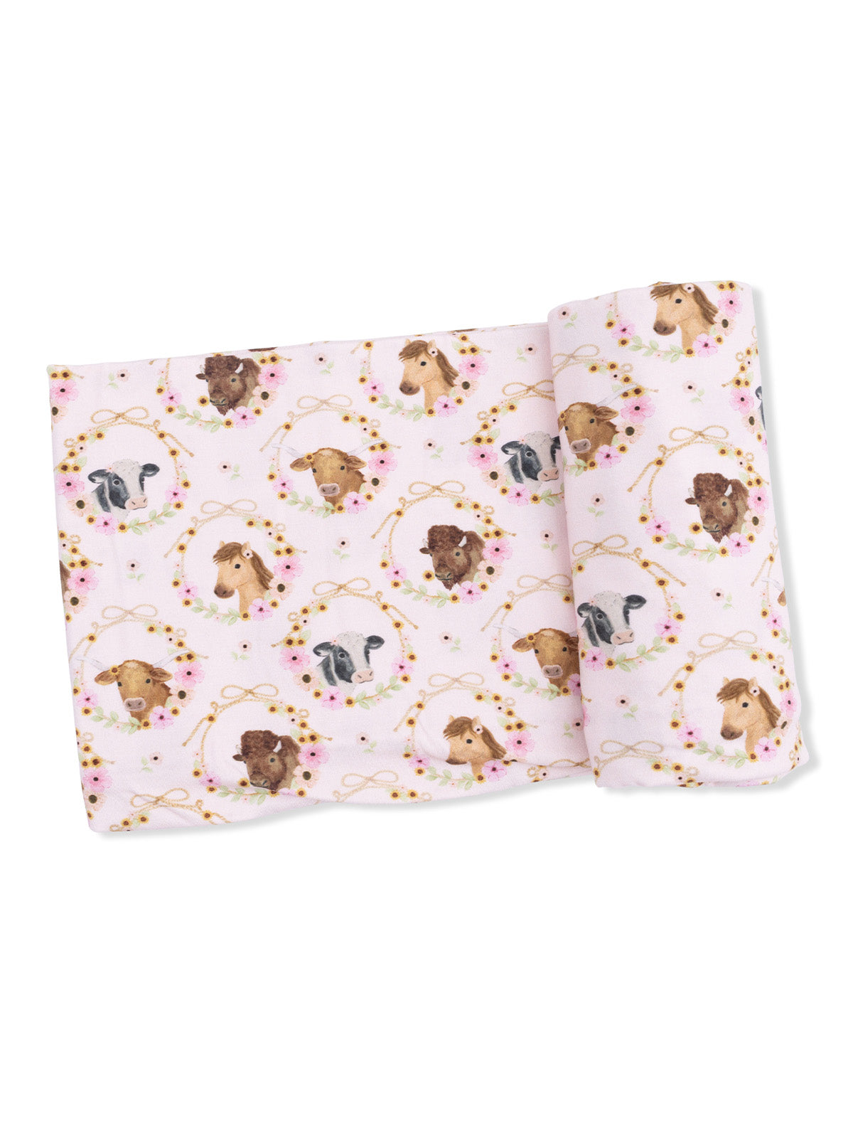 Stretch Swaddle, Farm Animals Floral Cameos