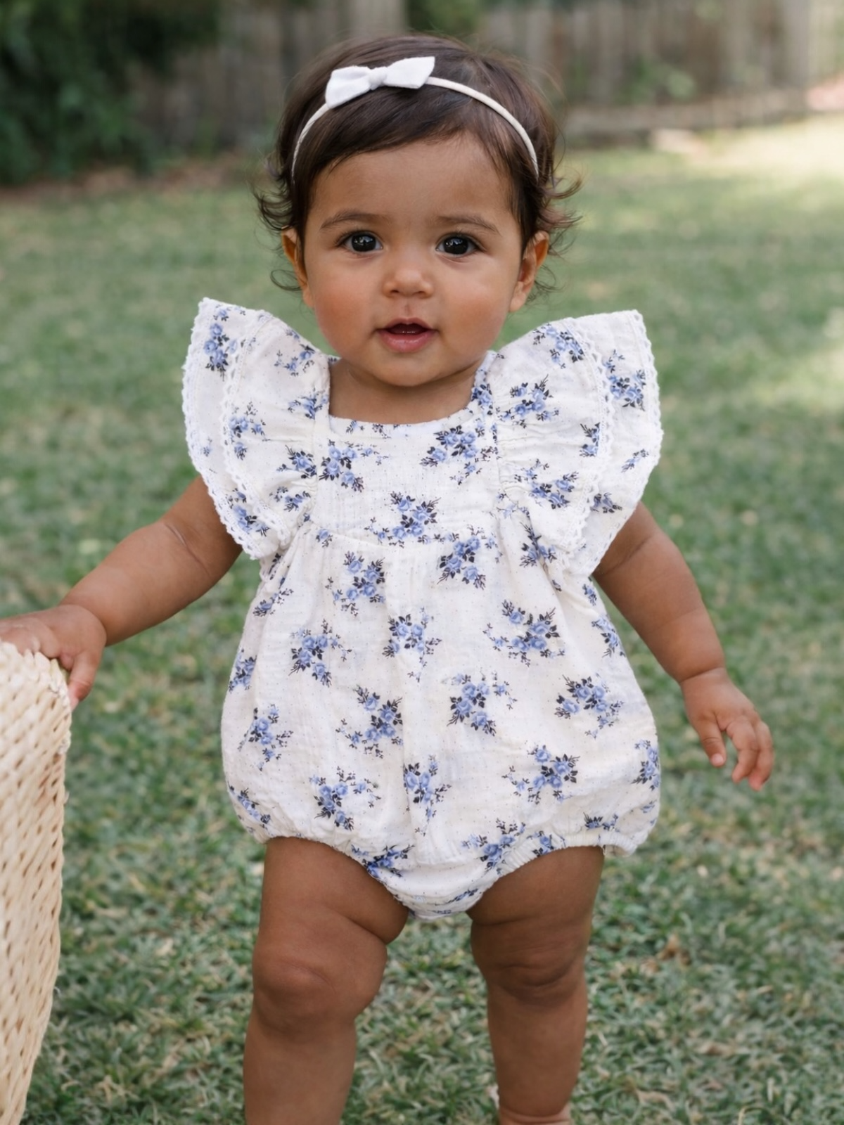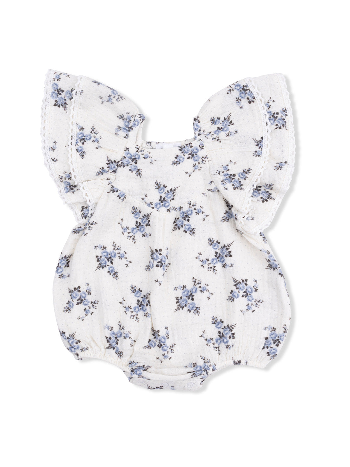 V-Neck Bubble Sunsuit, Belle Rosette Dot